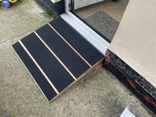 The ramp pictured is 16cms high x 80cms wide x 60cms long. Mainland shipping at cost.