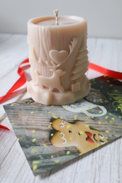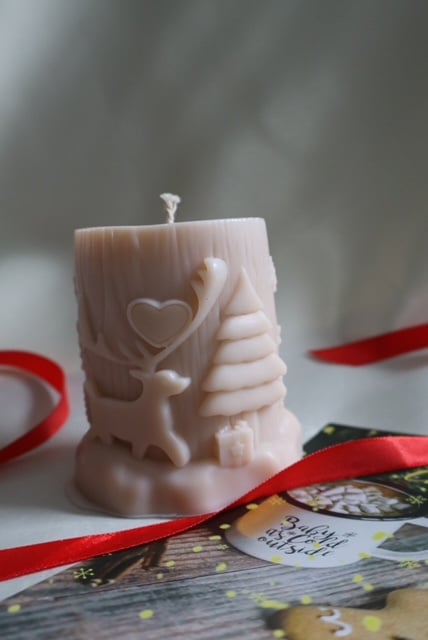 Illuminate your home with the enchanting glow of our Christmas Tree & Reindeer Cylinder Candle