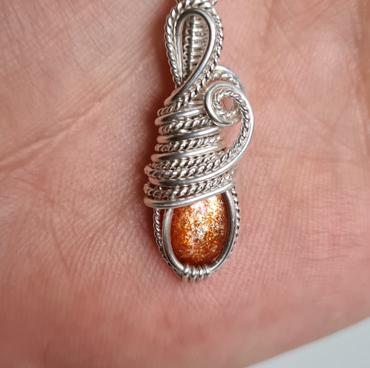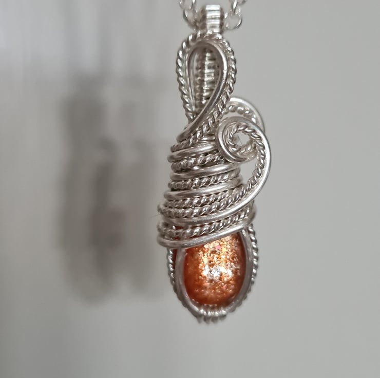 I have taken this lovely shimmering top quality Natural Sunstone and handwrapped it in 925 Silver and this crystal has the most beautiful glittery flash to it, and a amazing cheery energy.