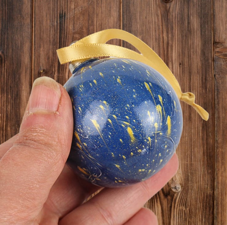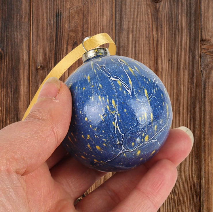 The baubles in this range are marbled directly onto the ceramic surface - a technique which is much more difficult than it sounds! Each bauble is marbled from a different bath, so they are all different and totally unique. They are lots of fun to make and totally addictive!