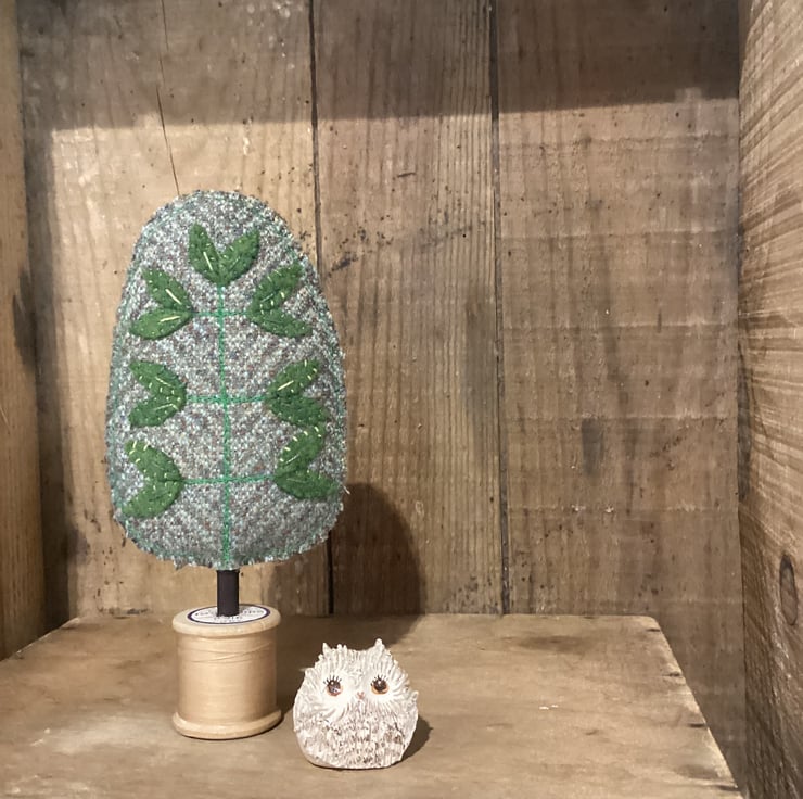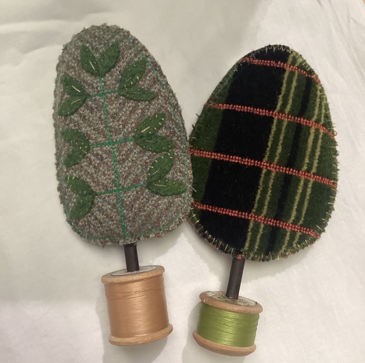 I love finding vintage fabrics that ‘speak tree’ especially if they have a wonderful story or usage in life. I bought a collection of classic tweeds from Lancashire from a great haberdashery seller at the Festival of Quilts In Birmingham. A beautiful fine suiting.