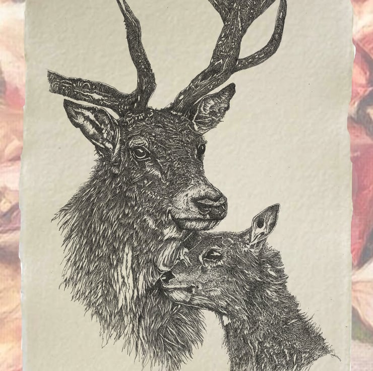 Fineline ink illustration printed onto handmade Khadi cotton paper for a unique finish. Size A4. Unframed.
