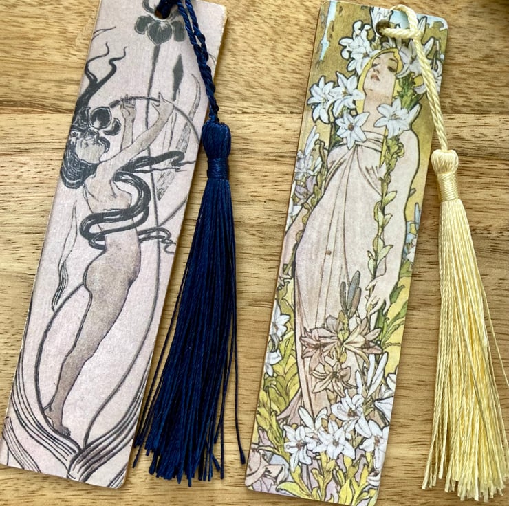 Beautiful pair of wooden Elegant Bookmarks featuring Art Nouveau Ladies