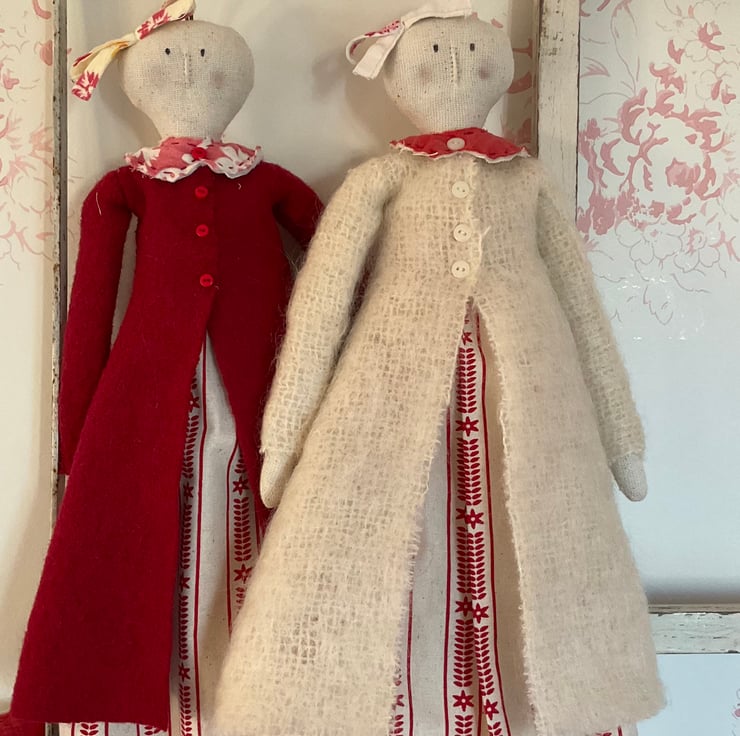 Her white boots are painted and trimmed with a tiny white bow. She is finished off with another tied ‘top knot’, bow.