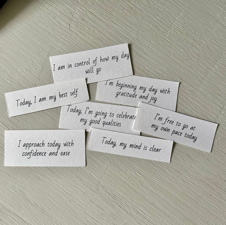 This would make a perfect gift either for yourself or a loved one who practises morning self care - the affirmations can be added into a morning self care routine or can be used as a journal prompt.