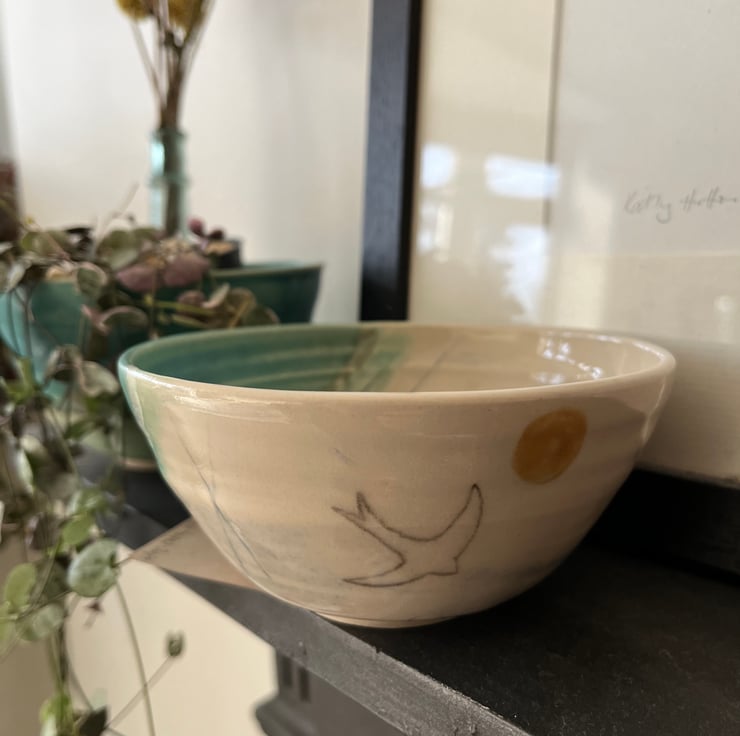 This bowl forms part of my Swift mustard moon range - The swift is associated with change, travel and communication. Swifts can also be signs of new beginnings.