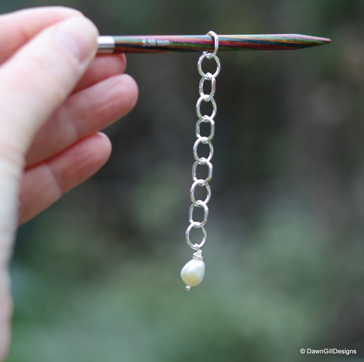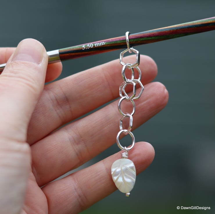 I’m terrible at counting, so like to add a charm to one end of these, so I can easily see where I am with my progress. The two shown here have a freshwater pearl and a mother of pearl leaf. I can easily make yours with a different gemstone – just let me know what you’d like.