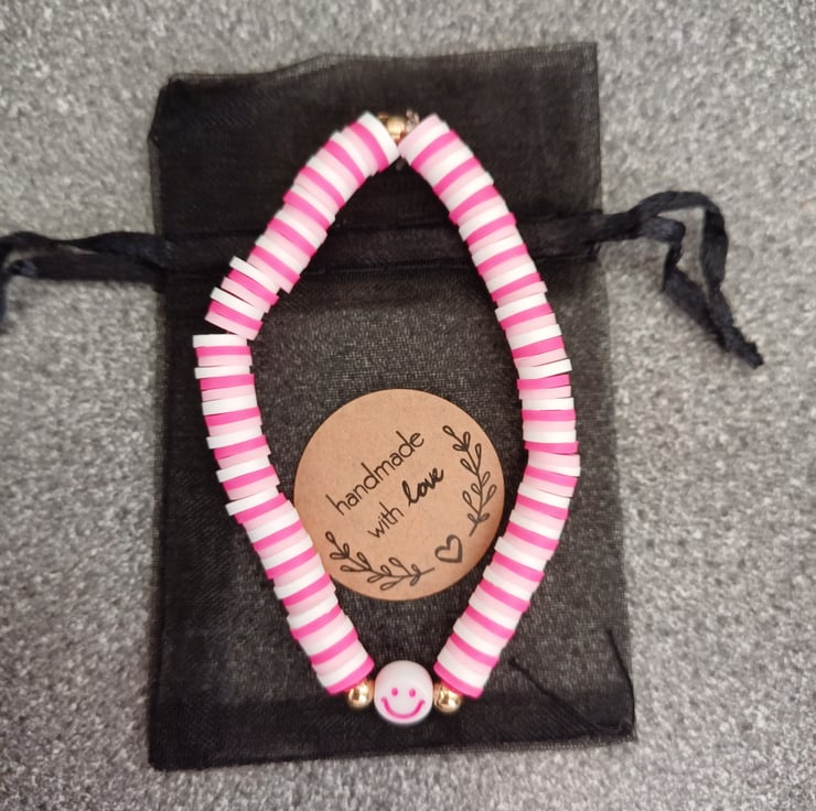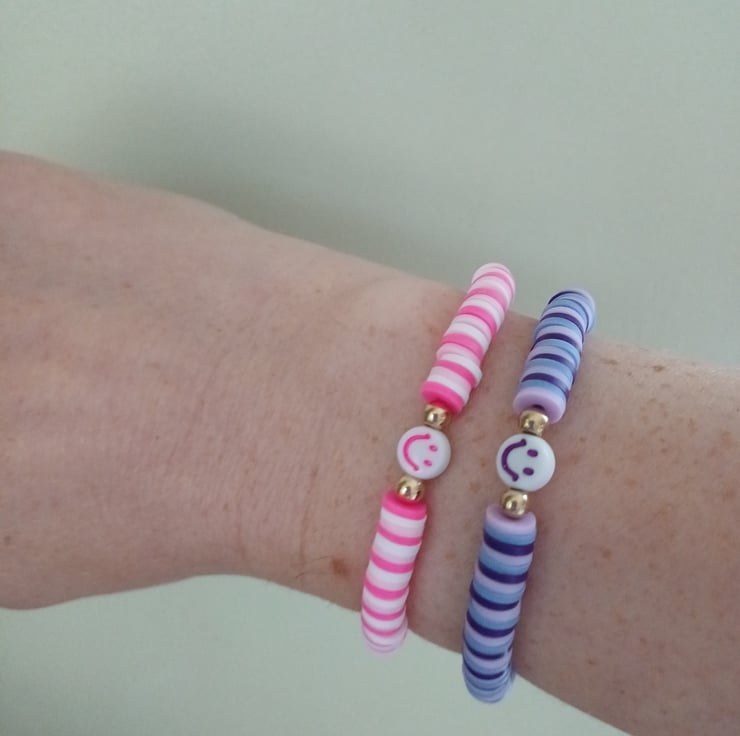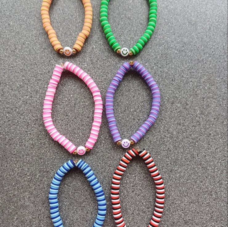 Colourful handmade smiley face bracelets.