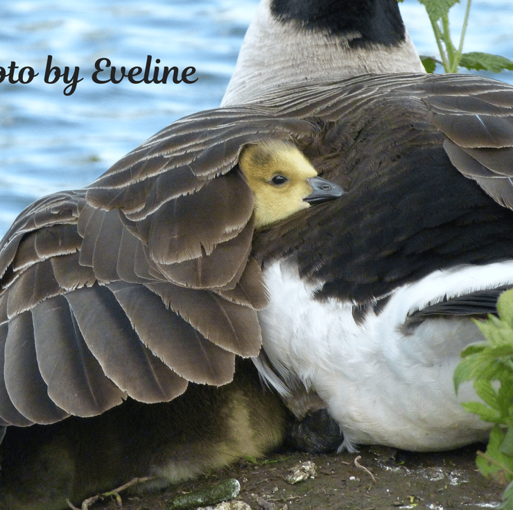 Every Spring a pair of Canada Geese nests on Buckley Common (Flintshire, North Wales) and I always go and visit them to see the young ones and take photos. This was truly a case of being at the right place at the right time. There were at least 3 goslings under their mother's wing and one popped its head out just as I was there!