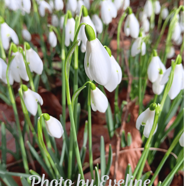 Most years in February since moving to North Wales, we go and see the carpets of snowdrops at Chirk Castle. These little flowers are a symbol of life and hope and the promise of Spring in late winter when it is still dark and cold. This a close-up shot of these pretty little blooms with the background blurred.