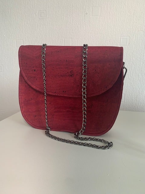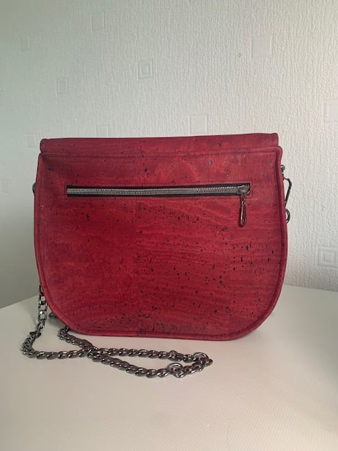 Add a little sophistication to your wardrobe with this Red Wine Crossbody Bag. Crafted from high-quality cork material with a chic chain strap. Perfect for all your everyday essentials. The strap is detachable inviting a variety of styling options. It's magnetic closure secures the flap and it has a spacious zip pocket at the back.