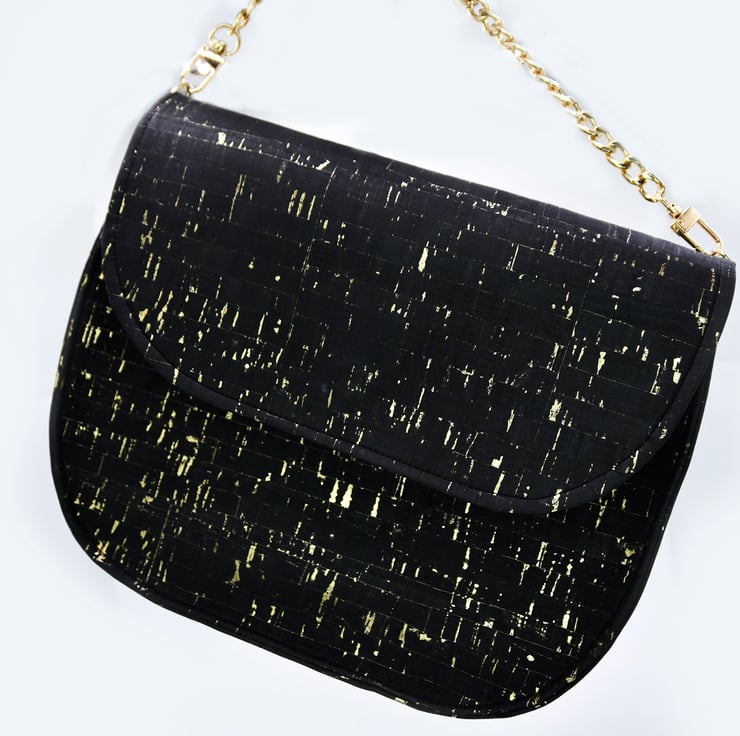 Bring a touch of golden sparkle to your day with this gorgeous Crossbody Bag. Crafted from high-quality cork material with a chic chain strap for a sophisticated touch. Perfect for all your everyday essentials. The strap is detachable inviting a variety of styling options. It's magnetic closure secures the flap and it has a spacious internal zip pocket.