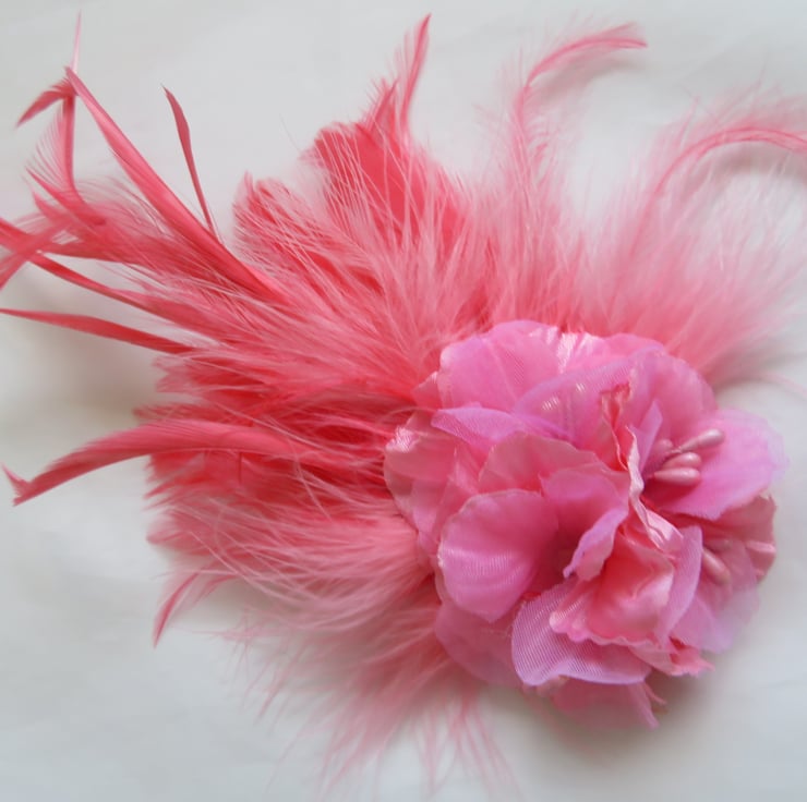 Coral Flamingo Salmon Pink Feather Plume and Flower Regency Style Vintage Clip