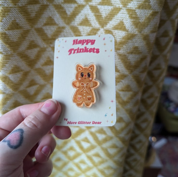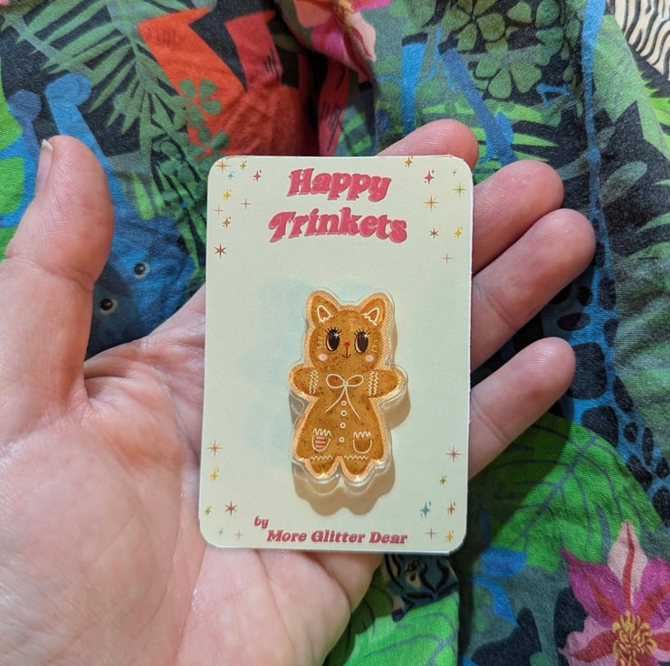 My Gingerbread Kitty design in a super cute acrylic pin!