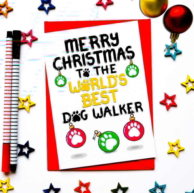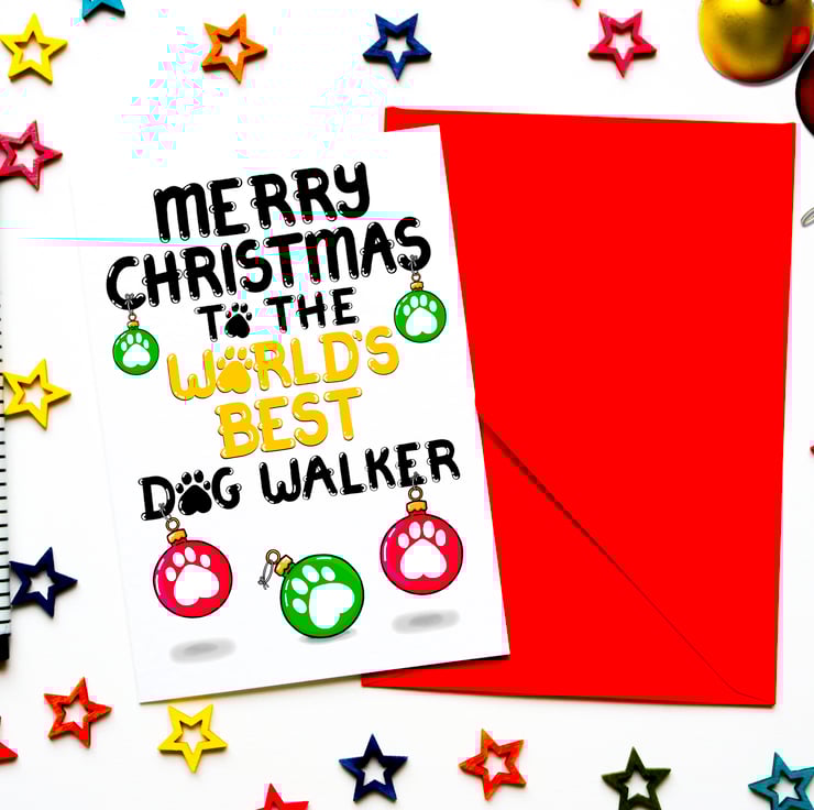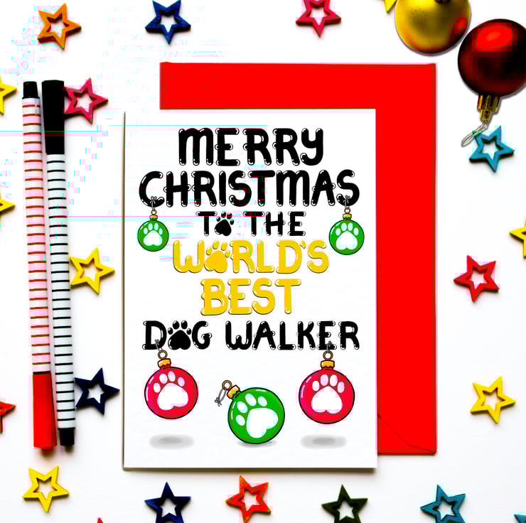 Greeting on front: MERRY CHRISTMAS TO THE WORLD'S BEST EVER DOG WALKER