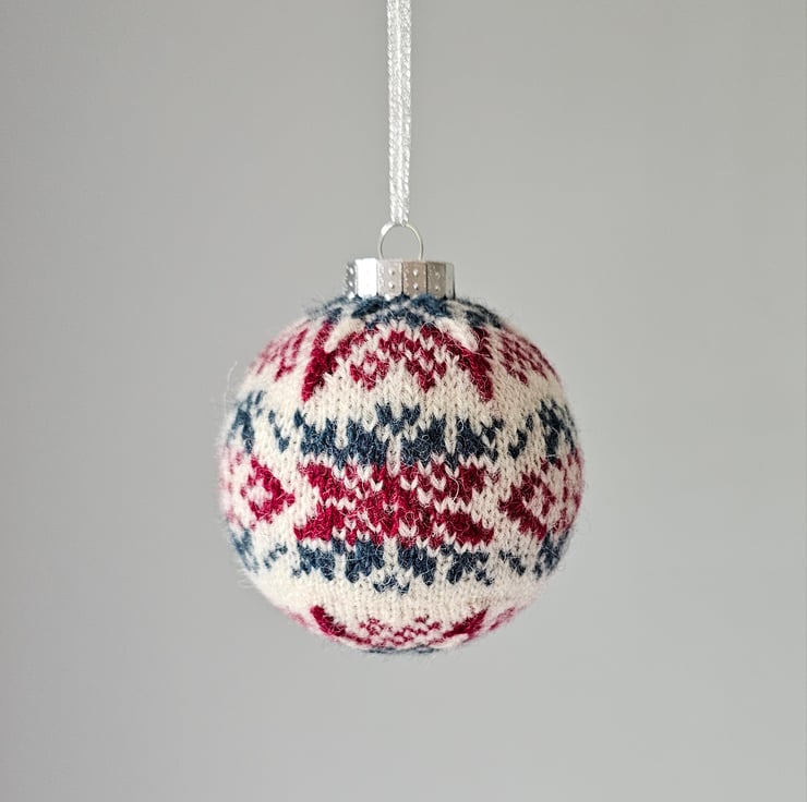 This Fair Isle bauble is my own design and is hand knit in 100% Shetland wool. Perfect to purchase as a treat for yourself, or as a gift for a loved one. To be hung on a Christmas tree or as part of other decorations around the house. Fair Isle can be used and displayed year round and not only at Christmas.