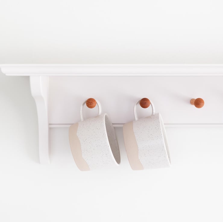 Our Shaker Peg Shelf is designed with a keyhole fixing situated in the backboard to ensure that once hung on the wall, the fixings are completely invisible and very secure.