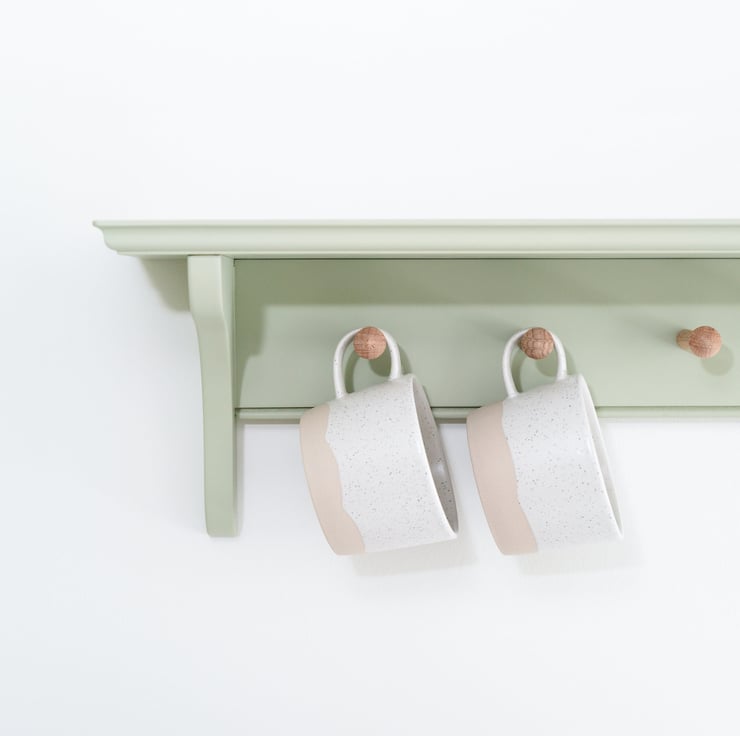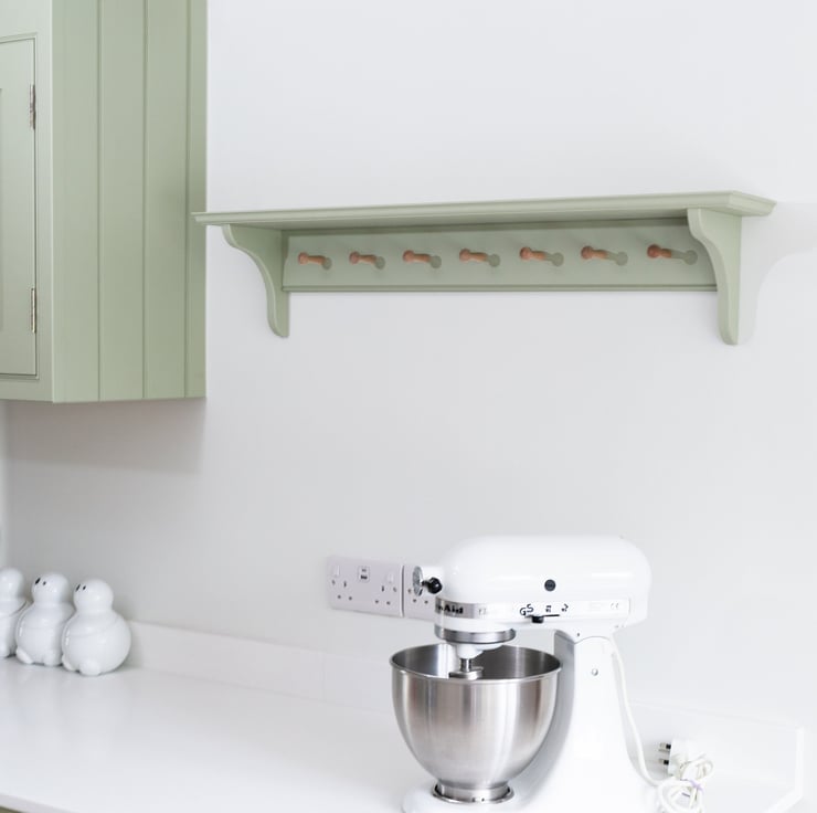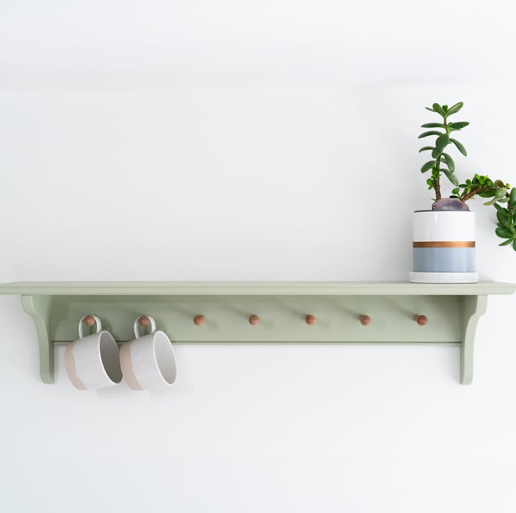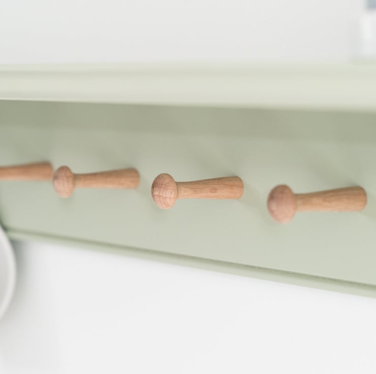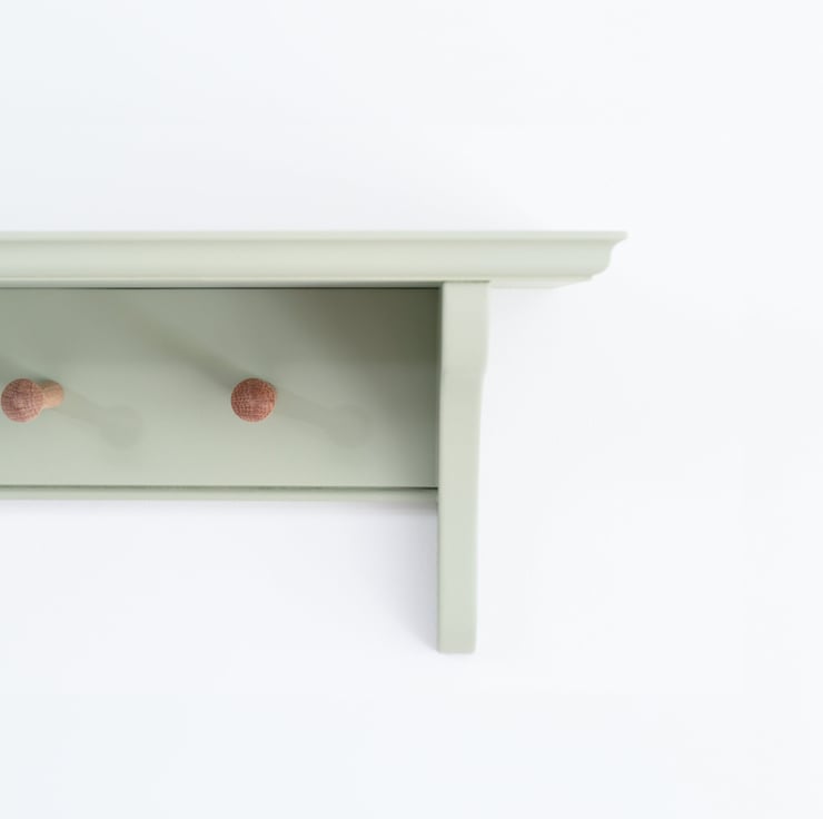 Shaker Peg Shelf in Vert De Terre, Coat Rack, Kitchen Peg Shelf, Coat Hook, Peg