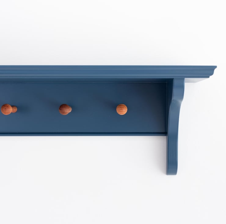 The Shaker Peg Shelf makes the most beautiful coat, hat, scarf and dog lead tidy , allowing for all your outdoor necessities to be stored in one place.
