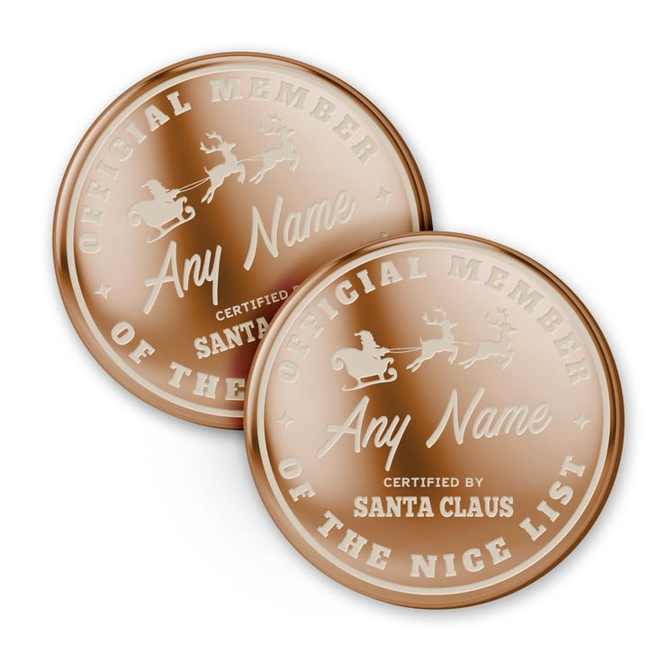 Celebrate being on Santa's "Nice List" with our Member of the Nice List Coin, personalised with any name! This festive coin is the perfect Christmas keepsake, featuring a beautiful festive design and a special certification that makes it officialyou're on the Nice List!