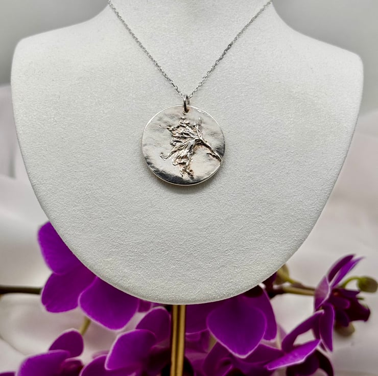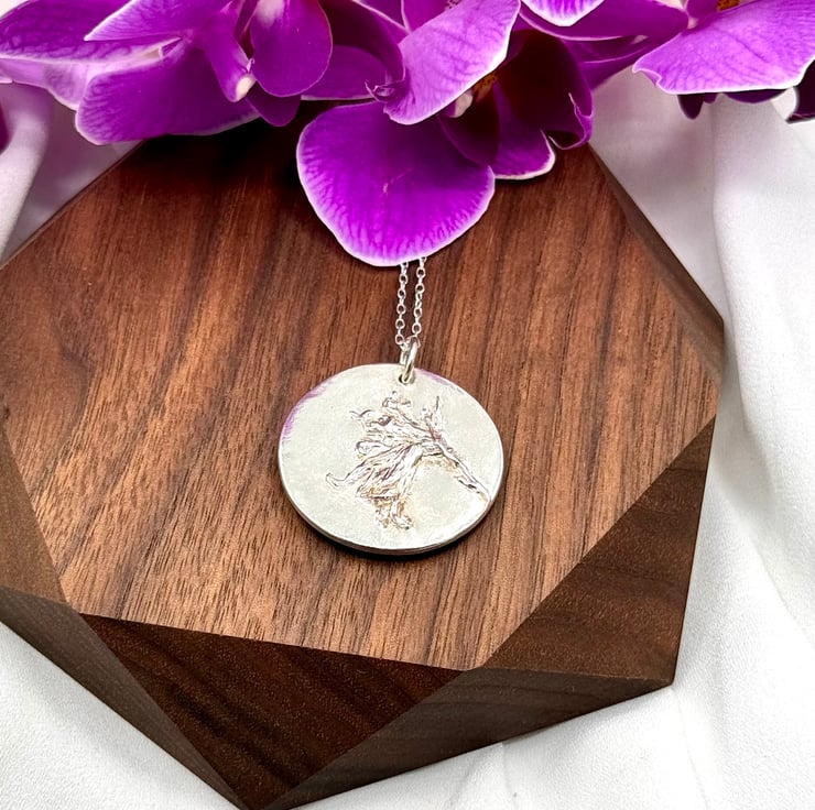 Fine Silver bluebell botanical necklace. I have handmade this necklace using eco-friendly silver metal clay. I create a silicone mould of a real bluebell, then make a silver cast using the metal clay, refine then kiln fire. The result is solid 999 fine silver.