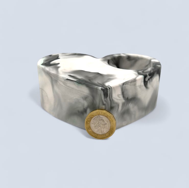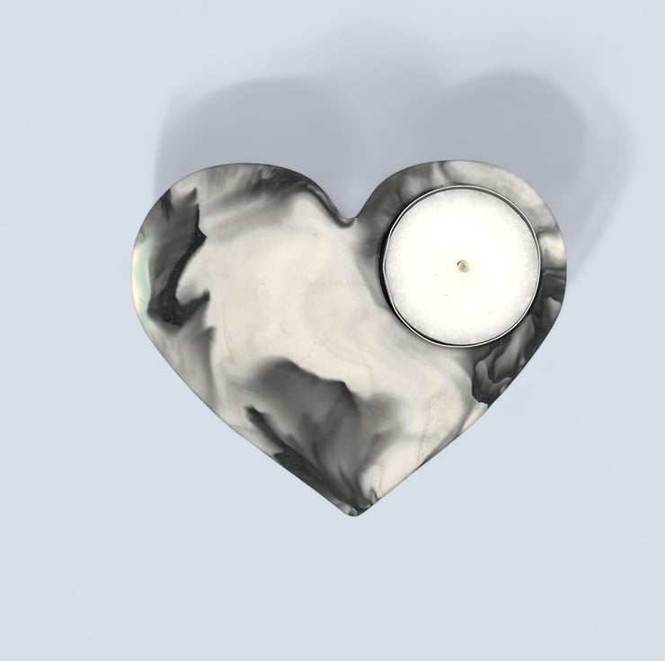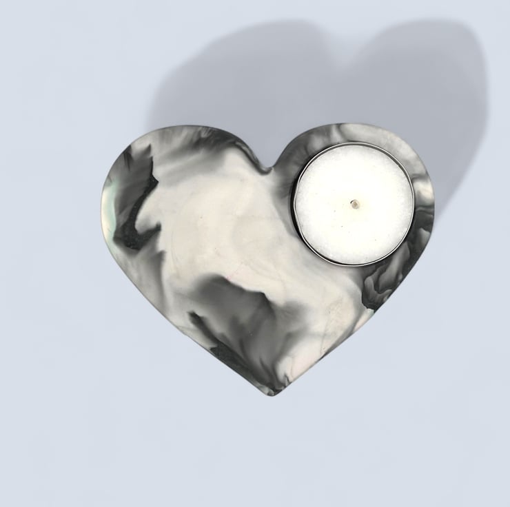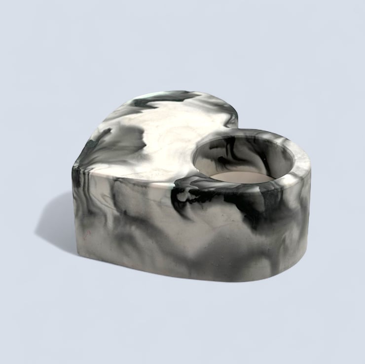 Inspired by the natural beauty of marble, this heart-shaped tealight holder was created to capture the calm and elegance found in smooth stone. The gentle grey marbling gives each piece a timeless character, while the polished finish adds a soft, tactile quality that feels both grounding and serene.