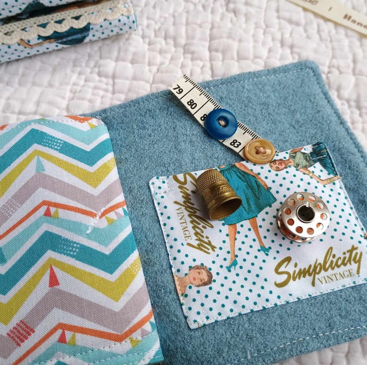 A generously sized sewing case for storing needles and pins, embroidery scissors and other notions. Ideal gift for a crafter, or buy for yoiurself. In soft colours and nostalgic retro prints, with some traditional hand stitched details, your case includes clever features to hold your small sewing equipment securely.