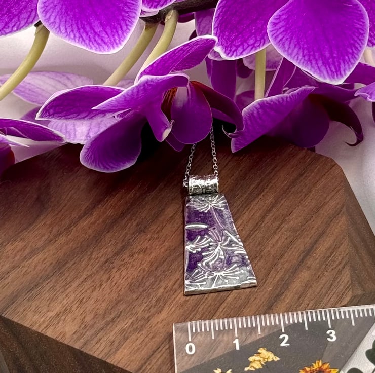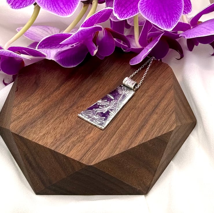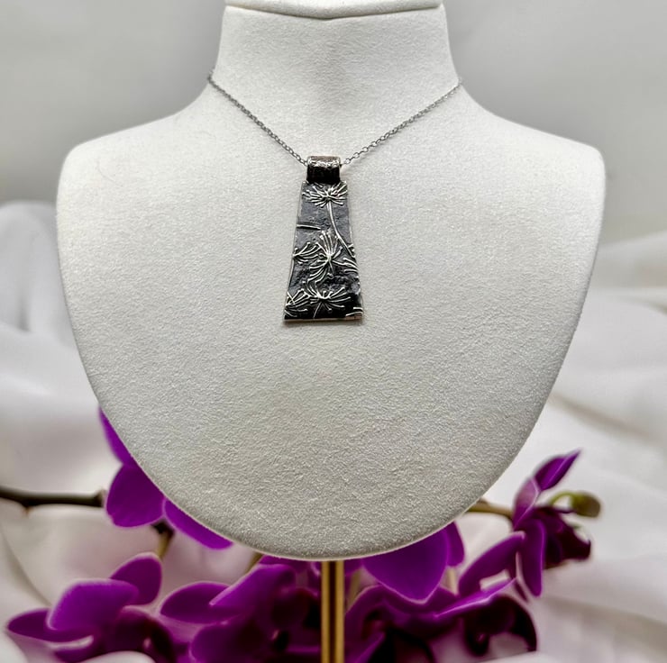 Fine Silver patinated dandelion textured necklace. I have handmade this necklace using eco-friendly silver metal clay. I texture and shape the clay, refine then kiln fire. The result is solid 999 fine silver. I have applied liver of sulphur to create an aged/ antique affect to the piece, add depth and make the design pop.