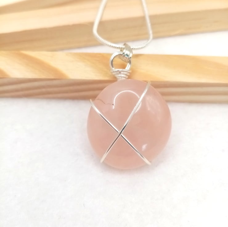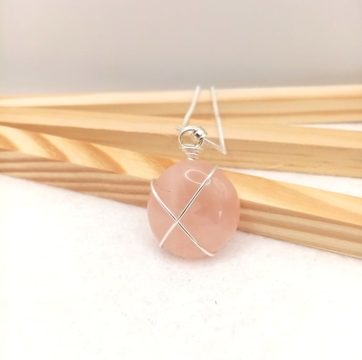 Natural Rose Quartz Necklace, Wire Wrapped Rose Quartz Necklace, Rose Quartz