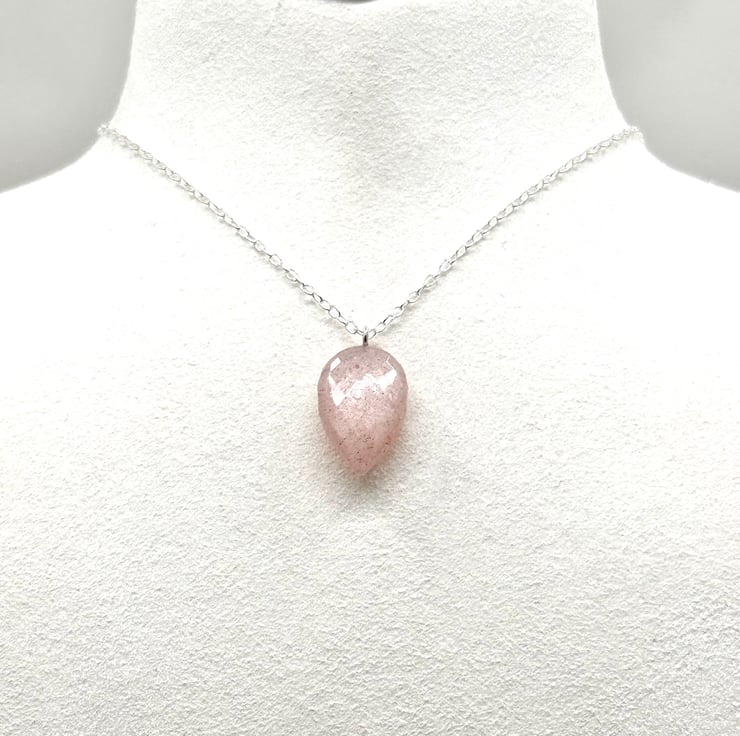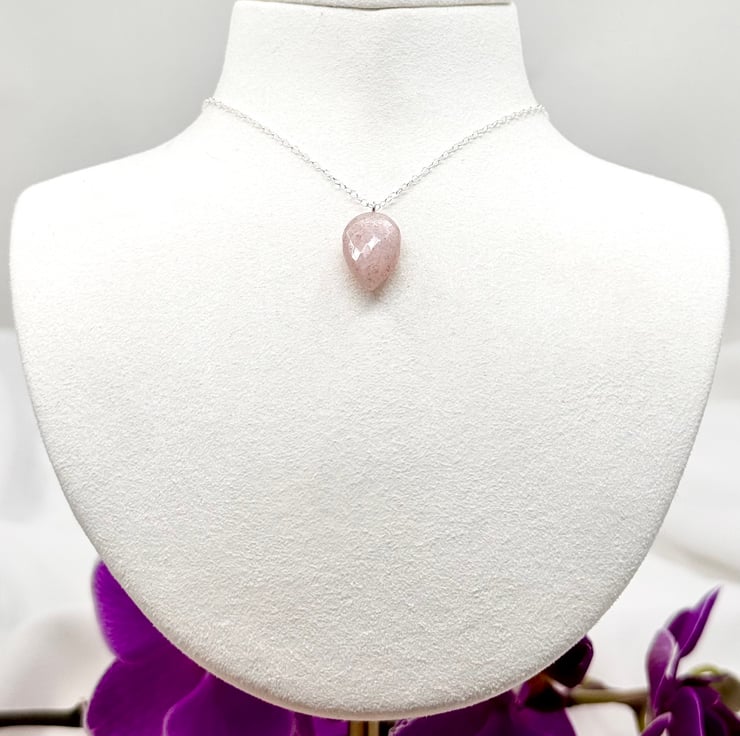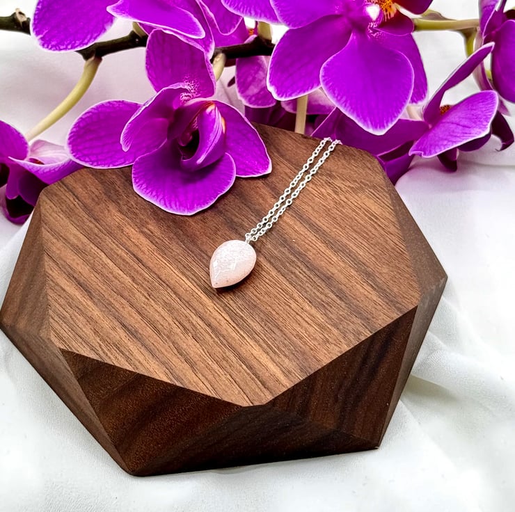 Sterling silver 16'' chain, Peach moonstone faceted pear semi precious gemstone