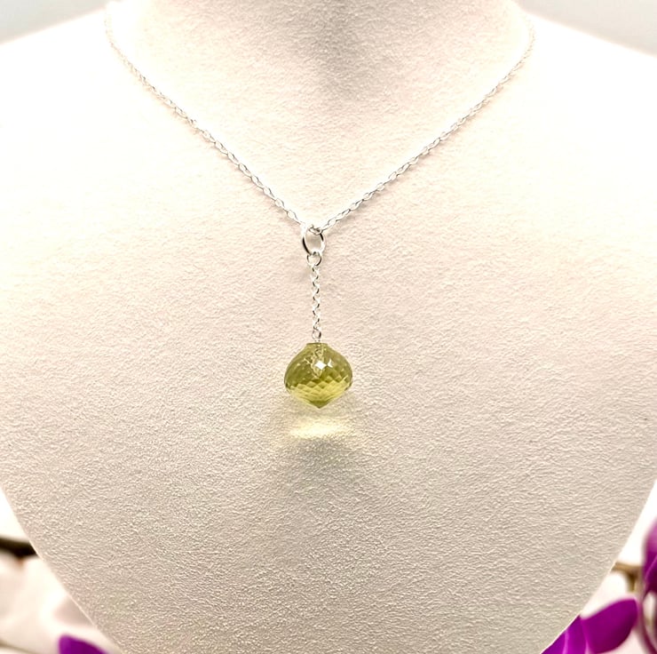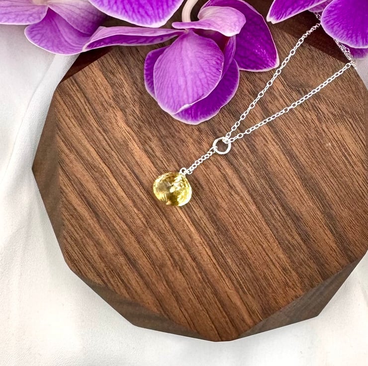 Sterling silver 16'' chain, lemon quartz micro-faceted onion semi precious gemstone