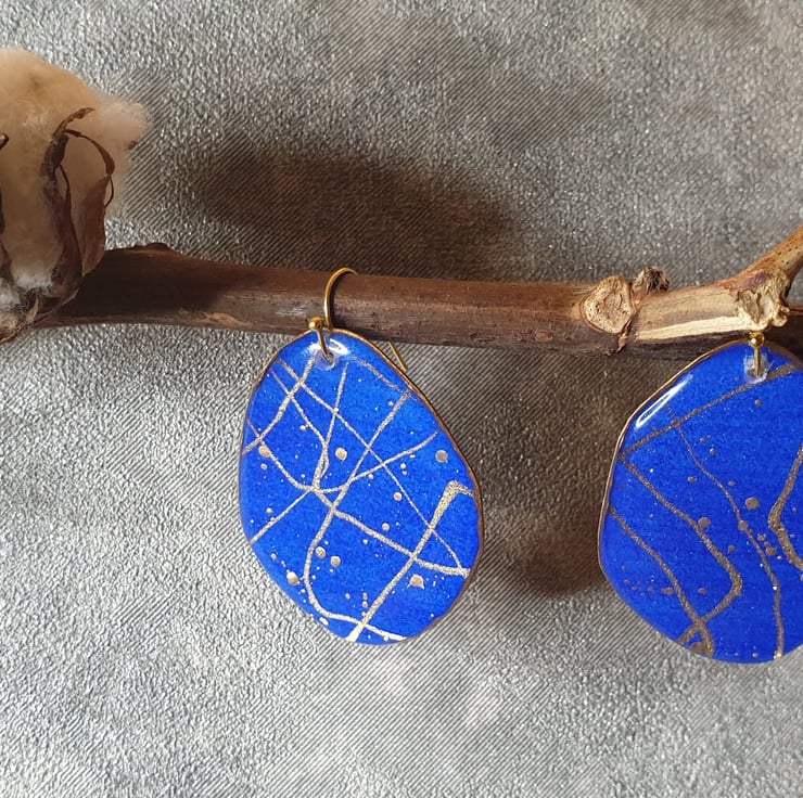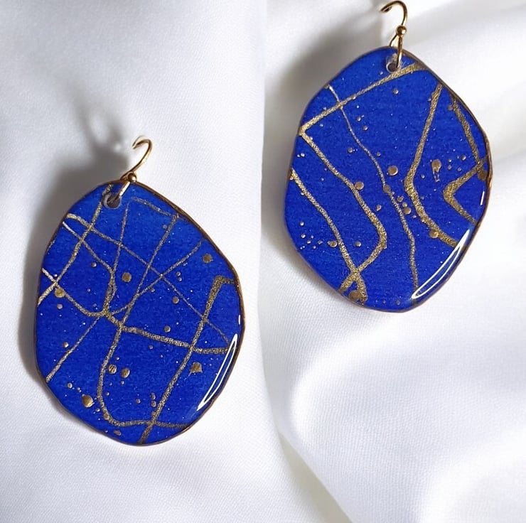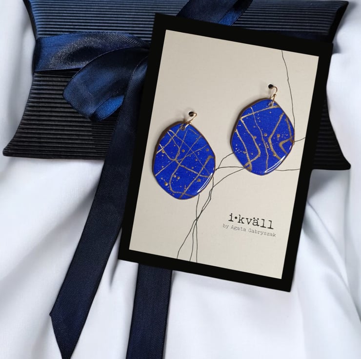 These beautiful large statement earrings are definitely made to impress. Unique mini watercolour paintings with inks, gold pigments and resin which gives them an almost 3D feeling. Extremely lightweight and elegant are ready to match any occasion.