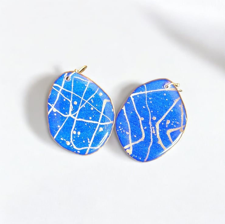 Statement Earrings, Large, Lightweight, Bold and Stylish, Blue Abstract Theme