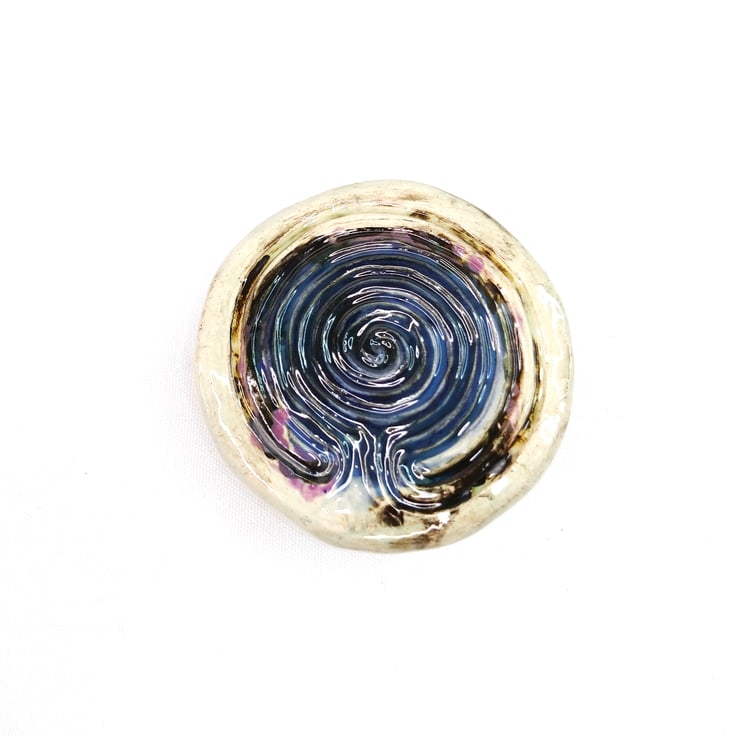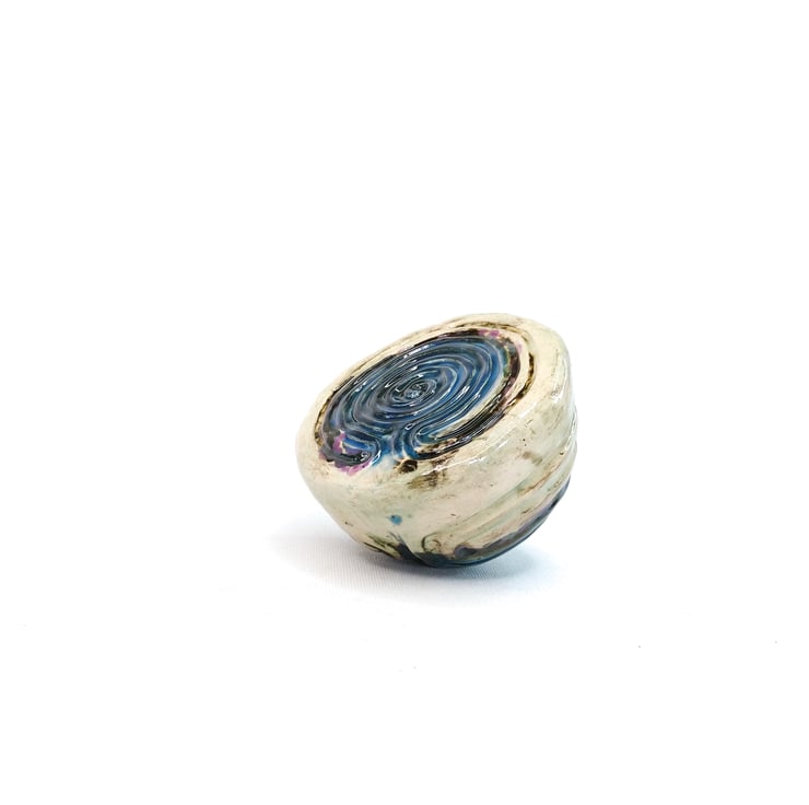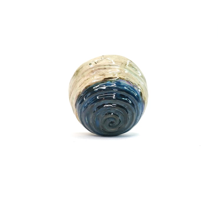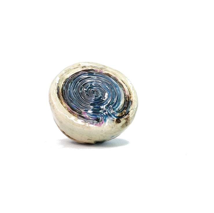 This handmade labyrinth is double-sided, each side designed to take you on a journey clock or anticlockwise. Fitting snugly in the hand you can trace the flat side of the labyrinth or if placed on a table, on its flat side, you gain access to the spherical labyrinth for the up and downhill “walk”.