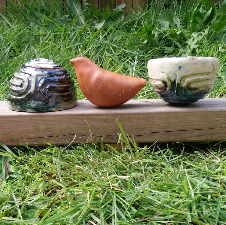 This is a hand-sculpted and carved in stoneware clay unique object of art. Made in England by artist ieva