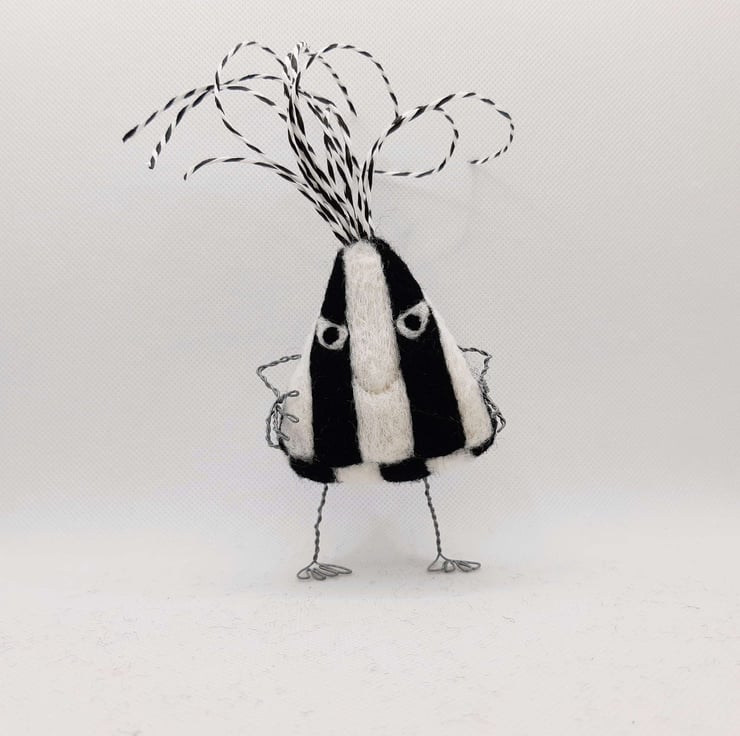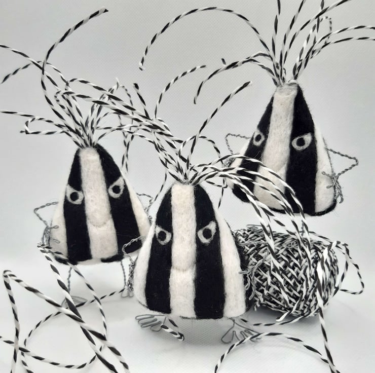 Price is for ONE humbug. Each humbug is individually hand made and may vary slightly from photos. Humbugs measure approximately 18cm in height Including hair) and are needlefelted from corriedale wool around a wire frame.