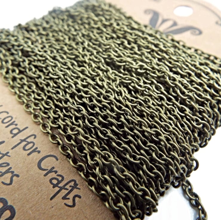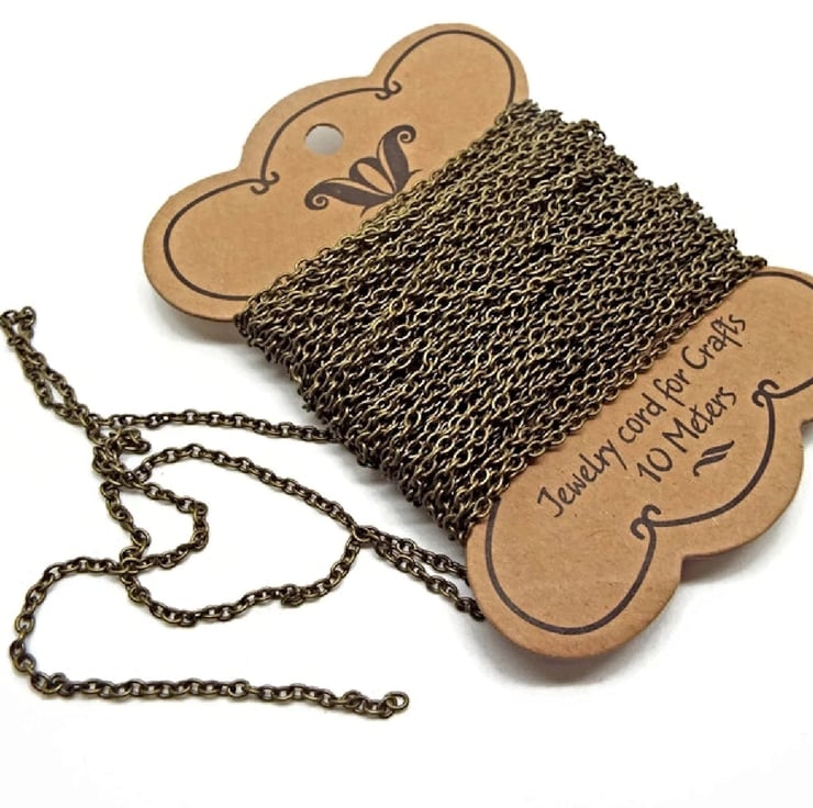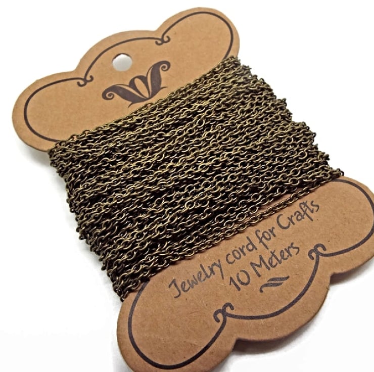10M Pack of Antique Bronze Tone Iron Cable Chain suitable for making necklaces, bracelets, anklets and adding to earring designs. Small links for more delicate looking jewellery