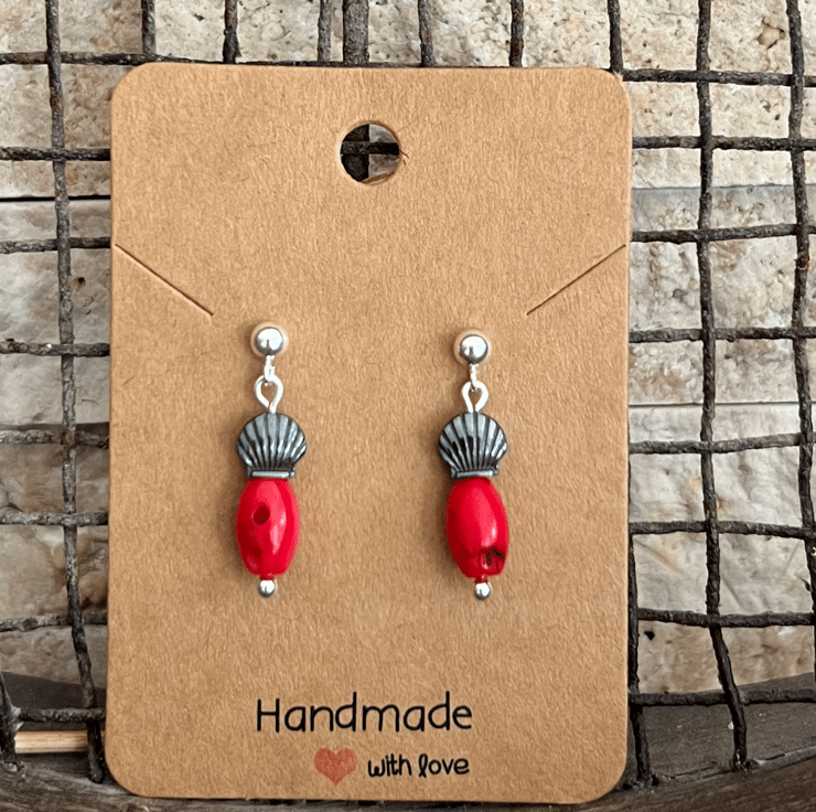 These coral and hematite shell drop stud earrings in sterling silver (925)are not only a striking blend of warmth and cool elegance but also carry the symbolic benefits of balance,vitality and protection.