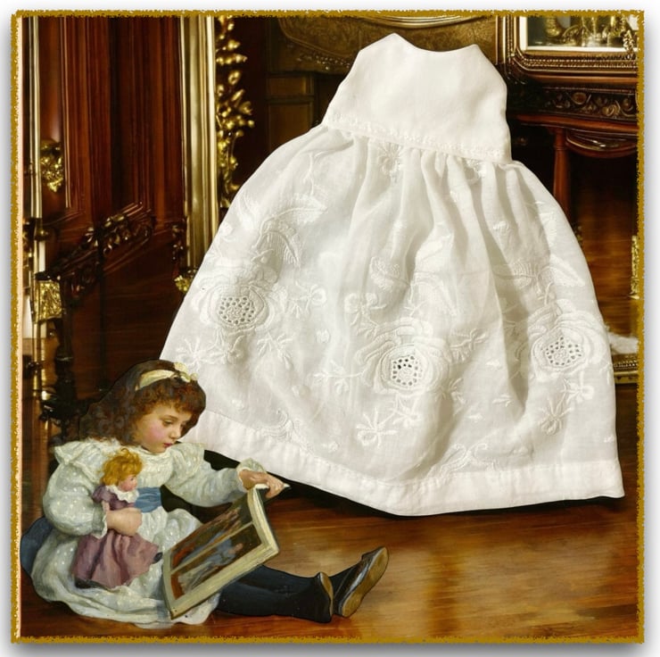 A beautiful white cotton nightdress with an embroidered skirt, to fit the Mulberry Green characters. The nightdress is part of the heirloom collection.