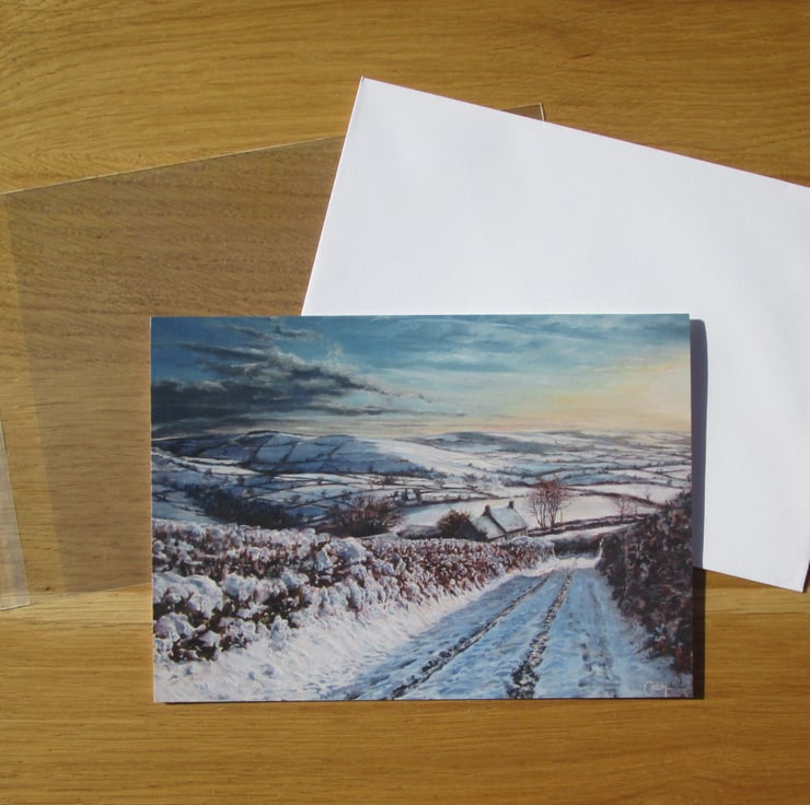 Winter Landscape Christmas/Seasonal Fine Art Greeting Card by UK/West Wales Artist, Conway Rowland.
