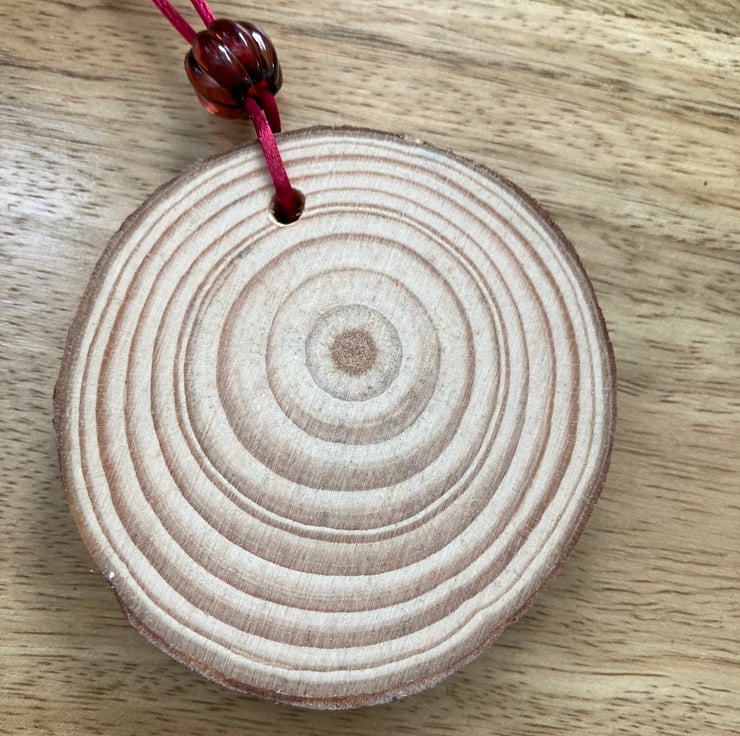 The wood slice is approx 6cm in diameter and will look really lovely anywhere, in the car, on a christmas tree, a stand alone hanging decoration any time of year, they also look great on door handles or on the end of a bed post.