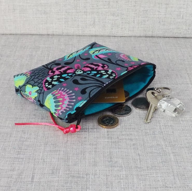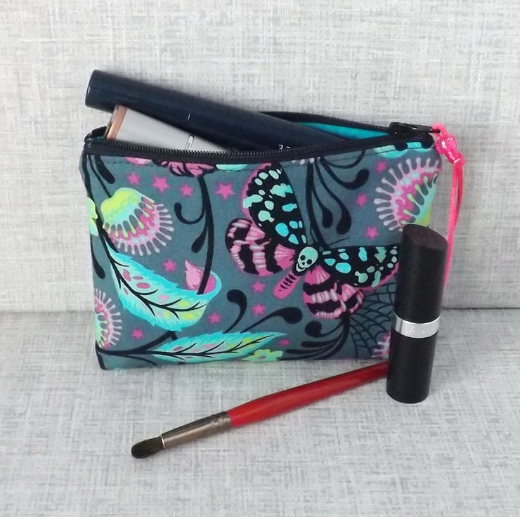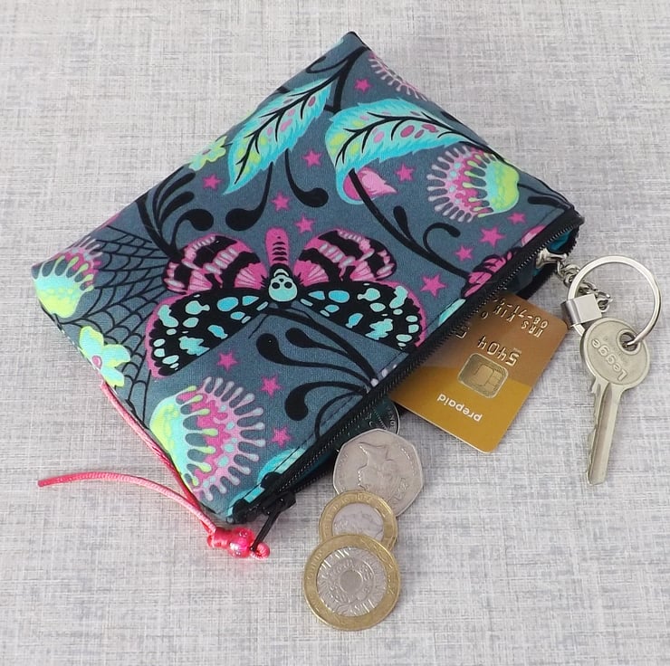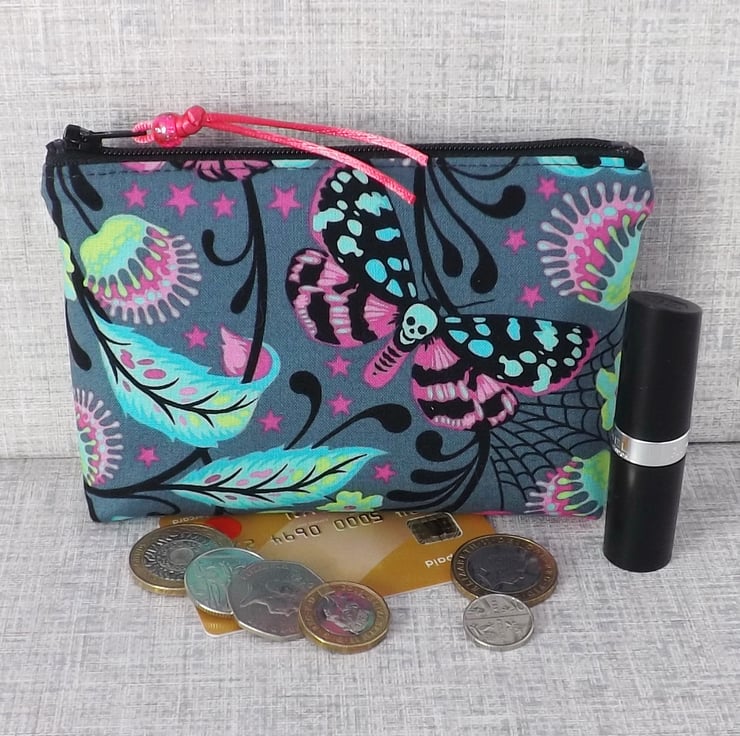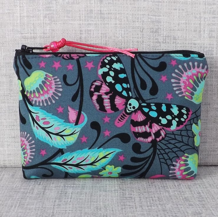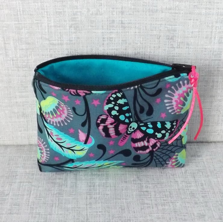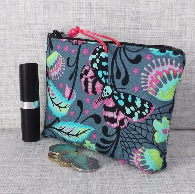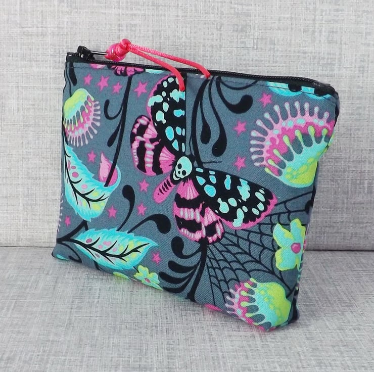 A large size coin purse made from a cotton fabric by Tula Pink.