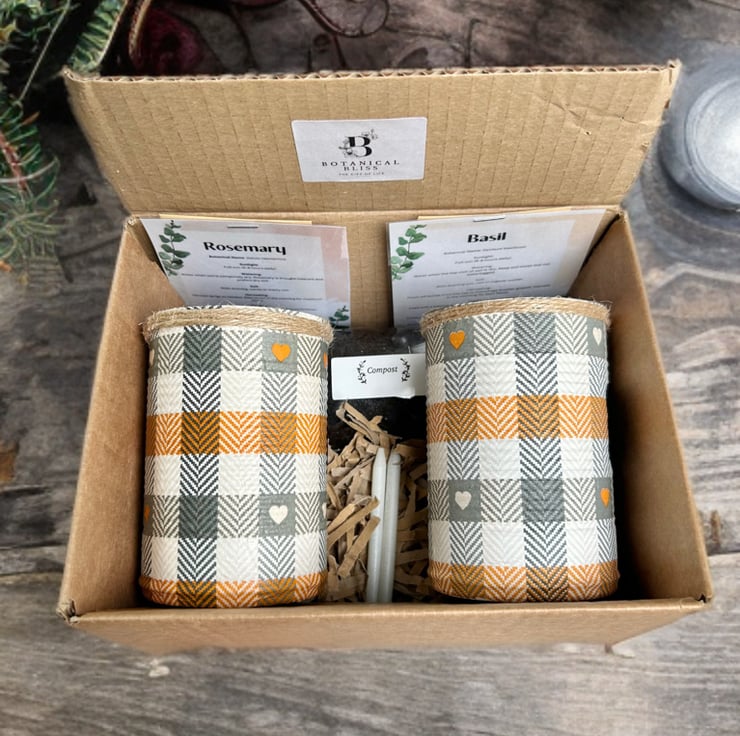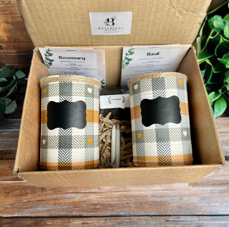 Boho Rustic Plaid Handmade Recycled Eco-Friendly Indoor Kitchen Herb Gift Set