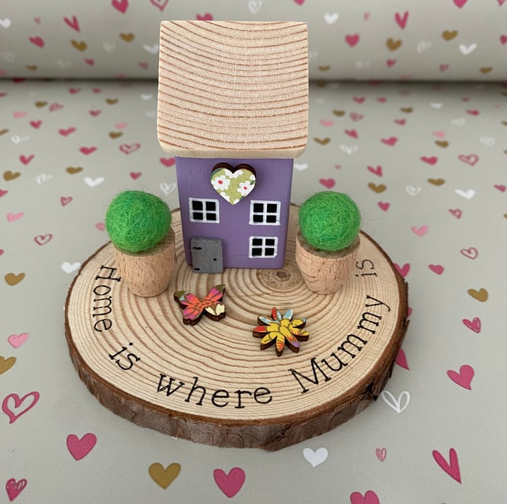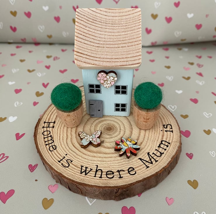 Personalised Miniature Wooden Cottage, gift for her mum Mother’s Day, ornament