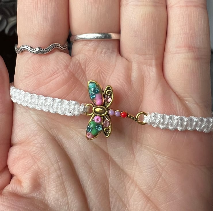 Make a statement with our Dragonfly Charm Macrame Bracelet! This cute bracelet with colourful turtle charm would make perfect little gift for someone special. The adjustable macrame design guarantees an ideal fit for any wrist size, and the long-lasting material ensures that this bracelet will be a treasured accessory for many years to come.