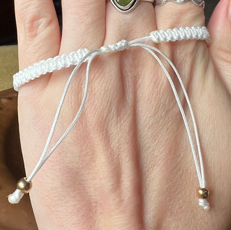 Bracelet is approx 6.5 inches when closed, however it is adjustable by using the slider knot up to 10" inches at maximum. However this can be personalised to a shorter or longer length when closed.