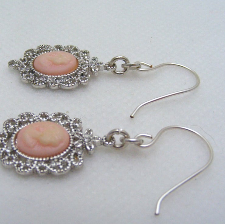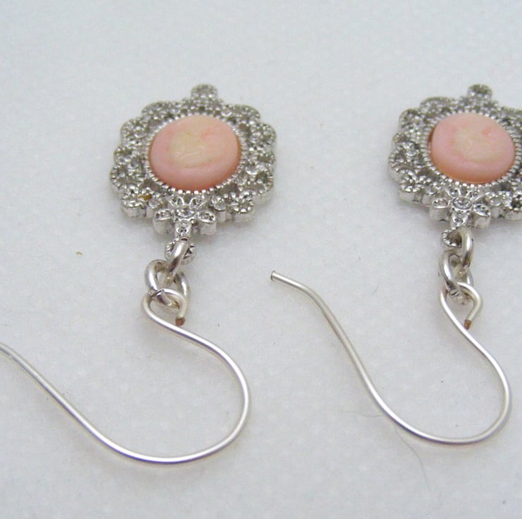 Pink and Silver Cameo Earrings
