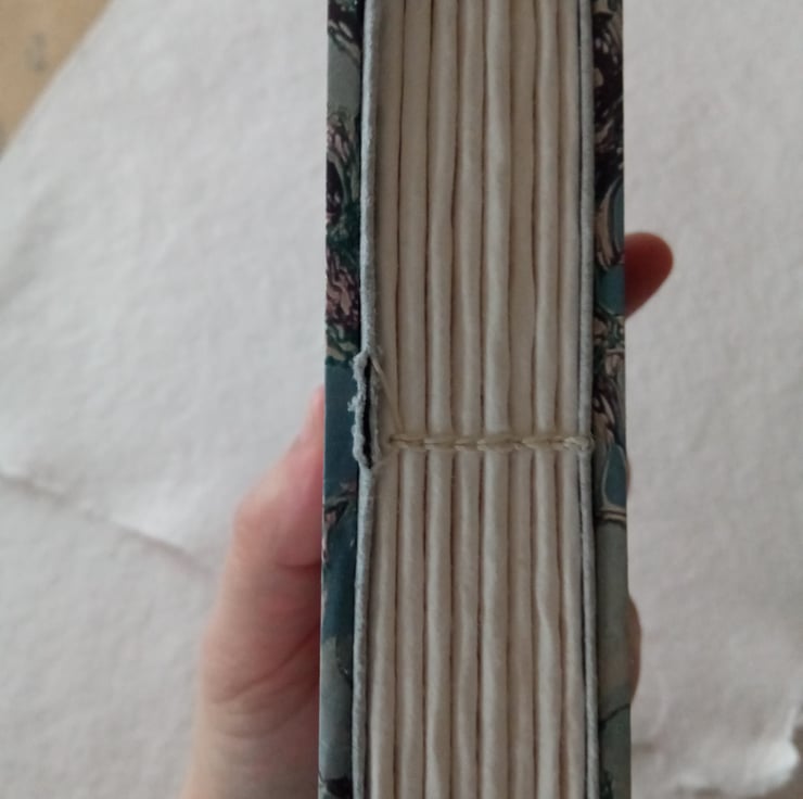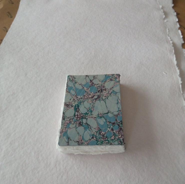 Watercolour sketchbook with cotton rag paper. Coptic stitch and printed marbled design cover. A6 portrait