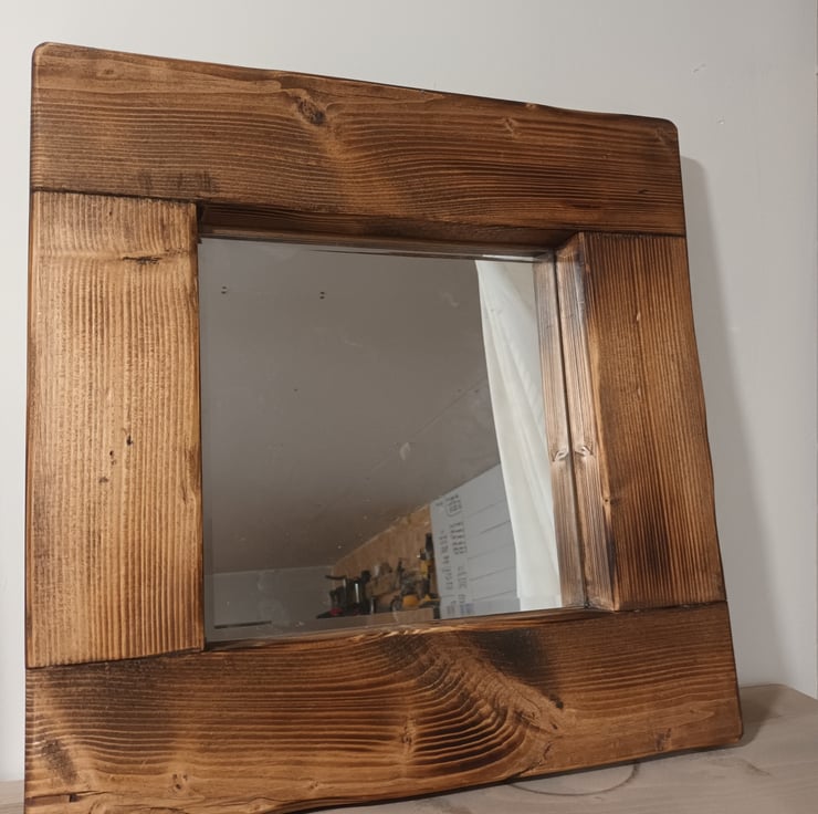 Burntwood frame Mirror, Square Decorative Mirror, Natural Wood Wall Hanging Frame, Mid-Century Contemporary And Traditional Interiors