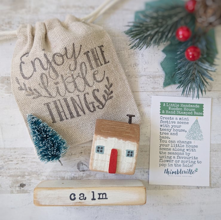 Little Wooden Handmade House in a Bag with Christmas Tree Calm
